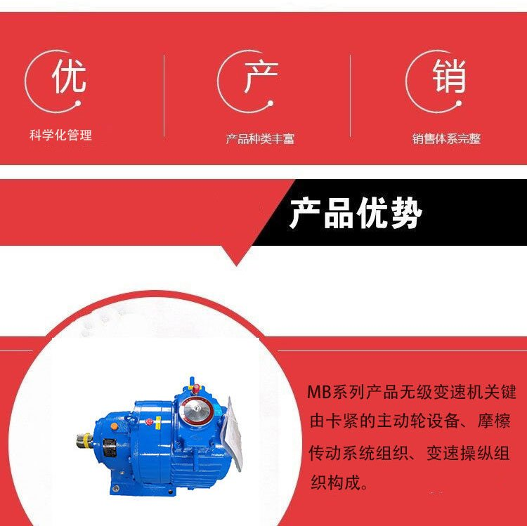 驱动装置采用的是转臂行星摩擦式无极调速变速机,减速机和防爆电动机一体设计,为设备提供连续不断的动力需要。MB系列减速机的六大件组合:转臂/调速凸轮/固定凸轮/压盘/行星轮/恒压轮/铜滑块